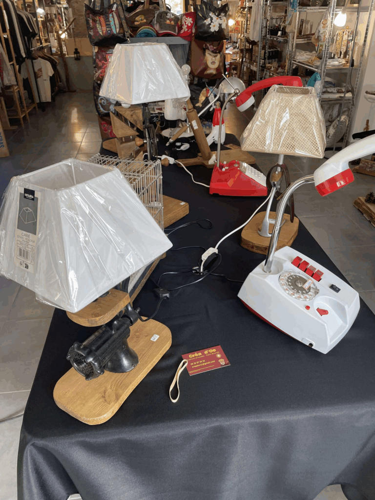 Je détourne des objets de la vie courante ( vieux téléphone outils divers ) en lampes leds